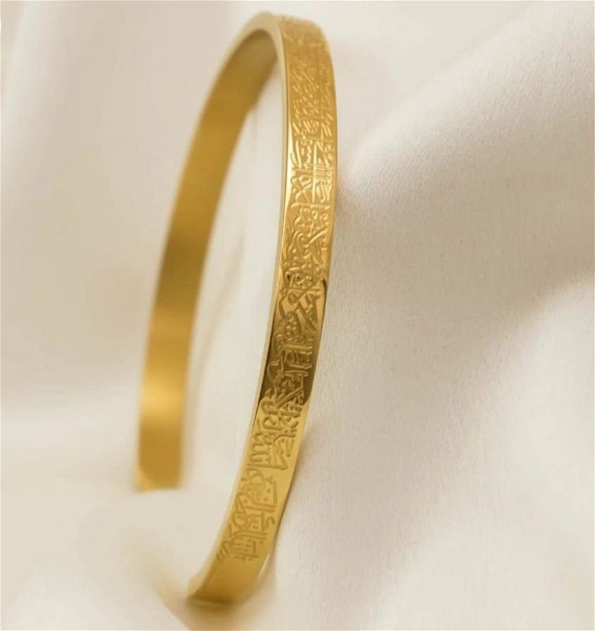 This bracelet carries profound beauty and meaning—engraved with the powerful Ayatul Kursi, a verse celebrated in Islam for the majesty, sovereignty, and protection of Allah. Crafted with care, the bracelet serves not just as a piece of jewelry but as a symbol of faith and divine guardianship. Whether worn daily or on special occasions, it reminds the wearer of spiritual strength, peace, and the encompassing presence of the Almighty.
