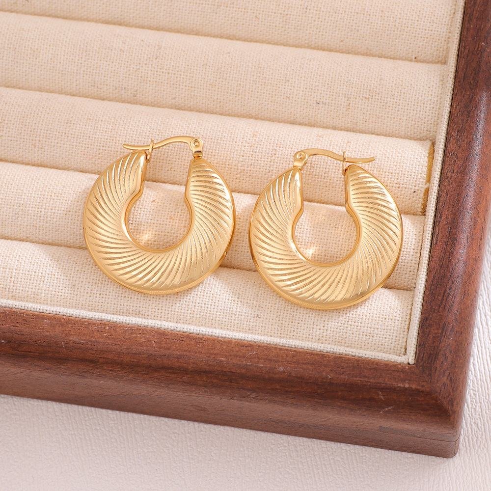 Bold yet timeless, these hoop earrings blend simplicity with confidence. A sleek, continuous circle frames the face, offering a chic finish that works effortlessly from casual days to elegant nights. Lightweight enough for comfort, yet designed to catch the eye, they’re a versatile staple that adds shape, balance, and a touch of attitude to any look.