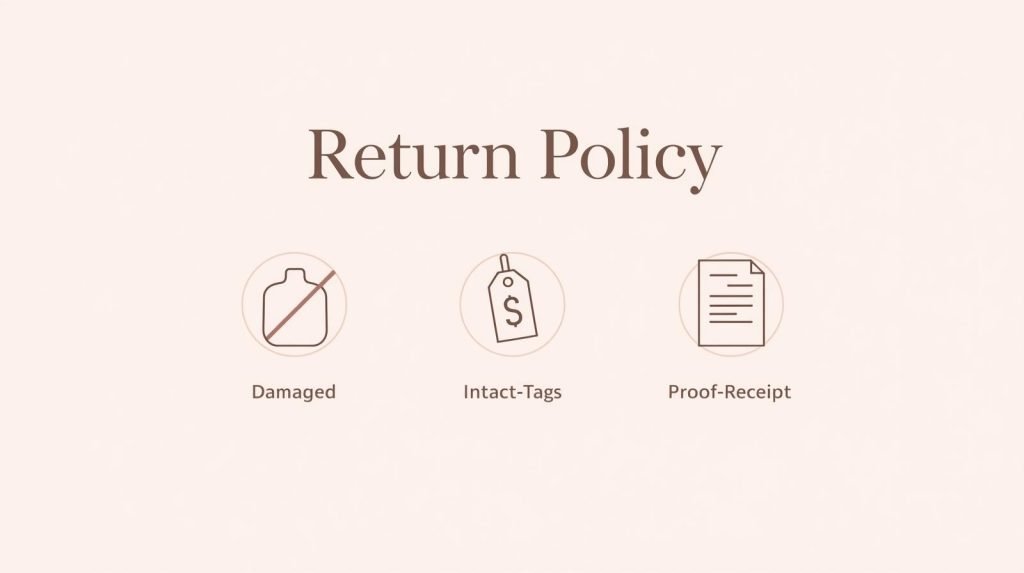 The item must be in the same condition you received it: unworn / unused, with tags still attached, and in the original packaging.